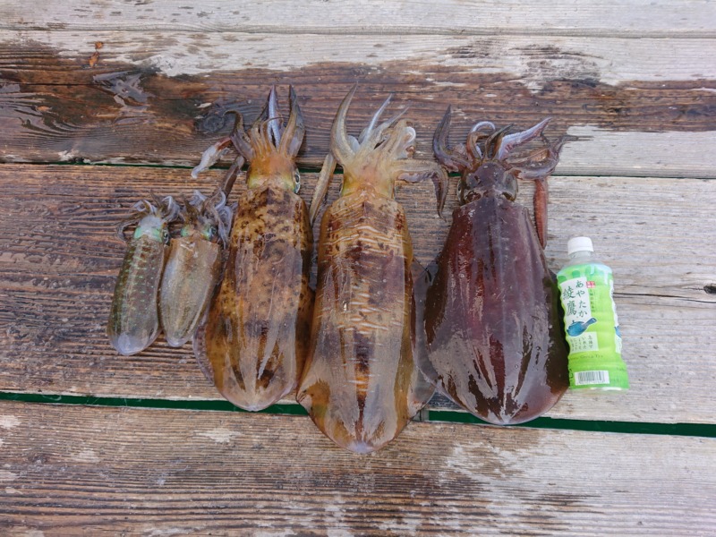 2021.04.08 釣果情報 daikoumaru 筏にて キロアップが3杯 筏 ヤエンで アオリイカ1750g頃に5杯 1750g 1530g 1470g、 今日は久しぶりにキロアップが釣れました、春イカです。 他の筏でも 800gを1杯でした、当たりも4~5回でした。 お疲れ様でした。 三重県の釣り情報