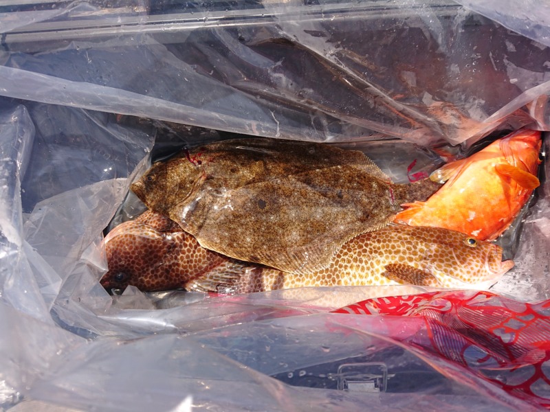 2021.06.17 釣果情報 daikoumaru 船、ノマセ&タイラバ ヒラメ 1枚 オオモンハタにアカハタなど釣れました。外海がウネリがあり湾内での釣果です。 船や筏の予約をお待ちしています。 三重県の釣り情報
