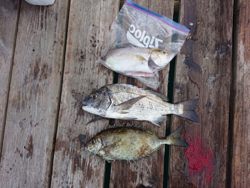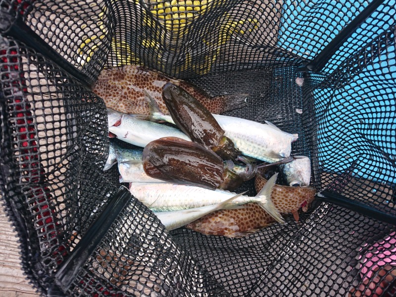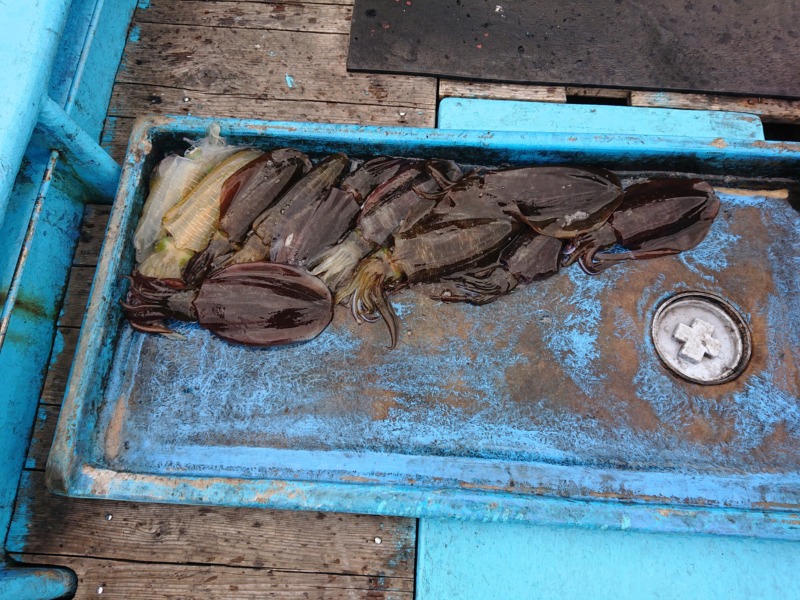 筏にて エギングでアオリイカ2杯エサ釣りでサバにオオモンタなど