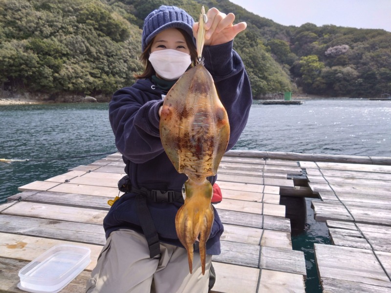 ヤエンと浮き釣りで、アオリイカを1杯ゲット出来ました。当たり5回です。