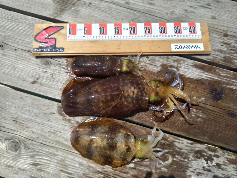 ヤエンでアオリイカ970g頭に3杯です。