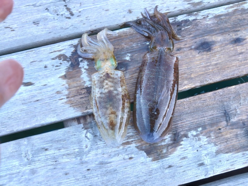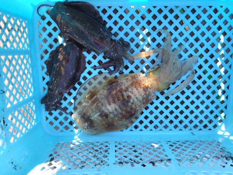 ヤエンでアオリイカ600頭に3杯、当たり4回。1杯はクーラーの中です。