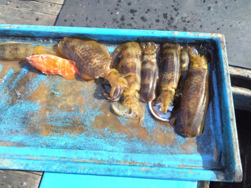2023.12.19 釣果情報 daikoumaru 船、ティップラン 今日は1名出船でした。 無風の中800g頭に7杯、デカイアオリイカが後を追って来た様です。 筏にて ヤエンとエギングで、500g頭に3杯、写真を撮るのを忘れました。 ありがとうございました。 ☆、年始は2日から営業をしますので、予約をお待ちしています。 三重県の釣り情報