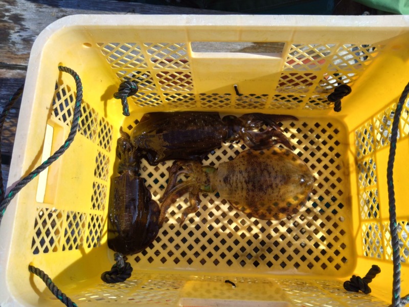 他の筏でも、エギングでアオリイカ500g頭に2杯