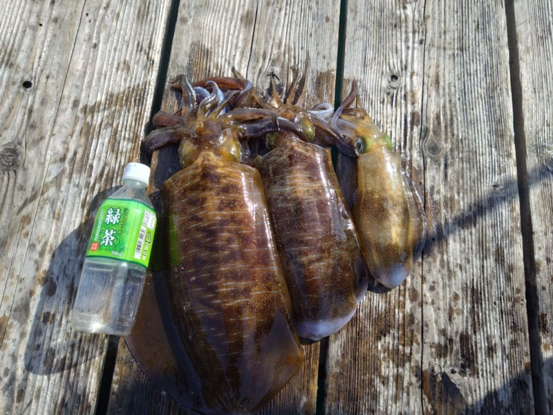 ヤエンでアオリイカ1380g頭に3杯、当たり5回午前中だけの当たりでした。