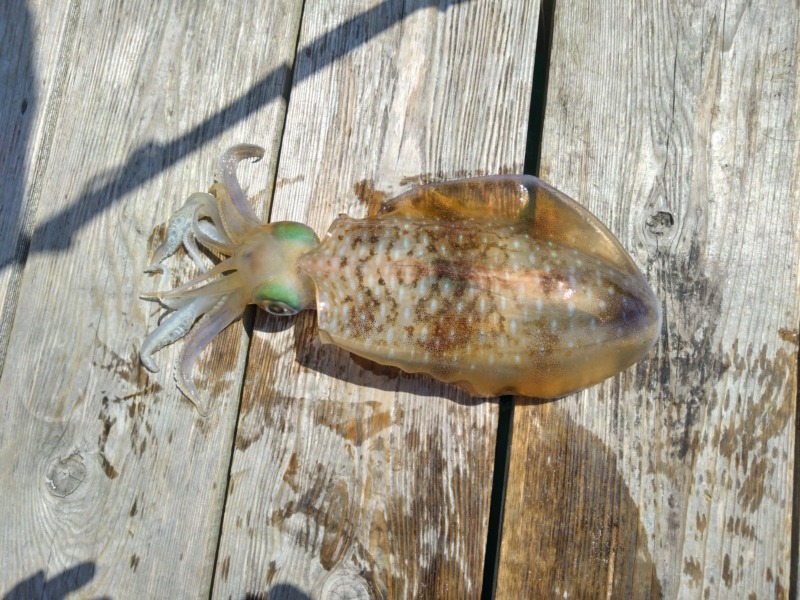 ヤエンでアオリイカ700gを1杯、当たり5〜6回、今日はかじり逃げが多かった様です。