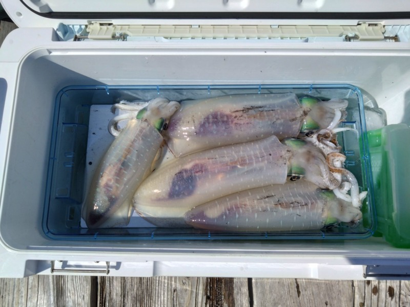 ヤエンでアオリイカ1キロ頭に4杯当たり8回、午前中の釣果です。
