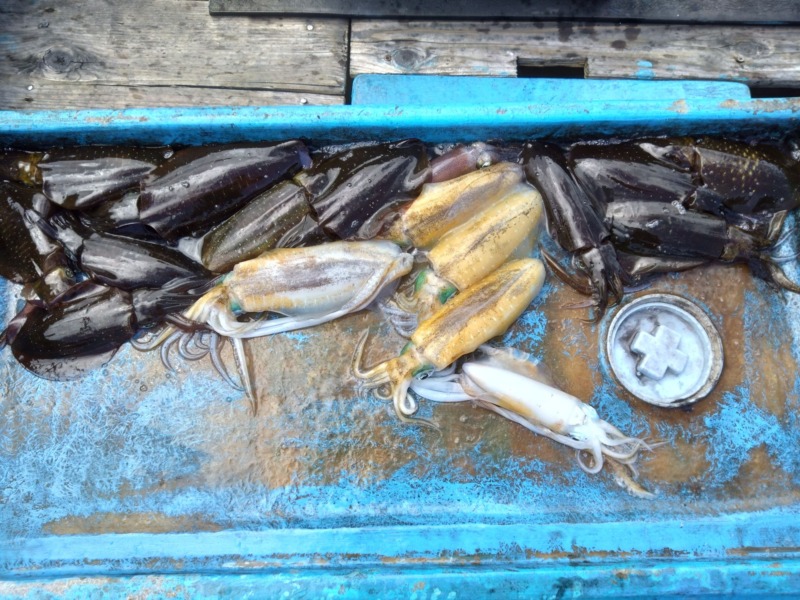 エギングで新子のアオリイカを8杯、甲イカ1杯