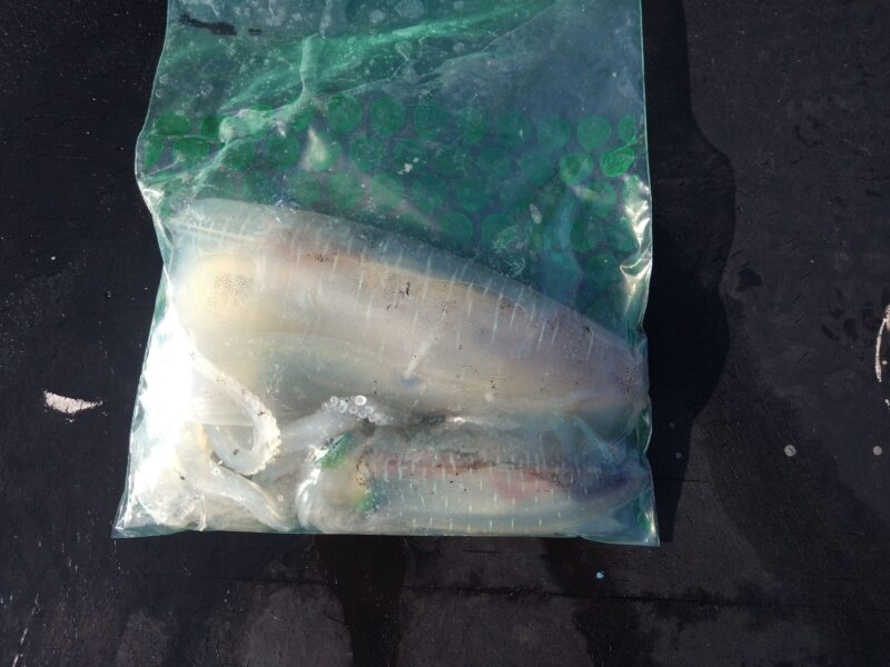 ヤエンでアオリイカ850g頭に2杯、風が強くなり昼前に上がりです。