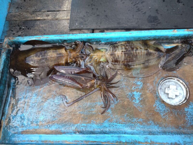 2026.01.24 釣果情報 daikoumaru 船、ティップラン 久しぶりの出船でキロアップ頭に4杯、キロアップが2杯 1340g、1100g 流れ無い中での釣果です。 ありがとうございました。 三重県の釣り情報