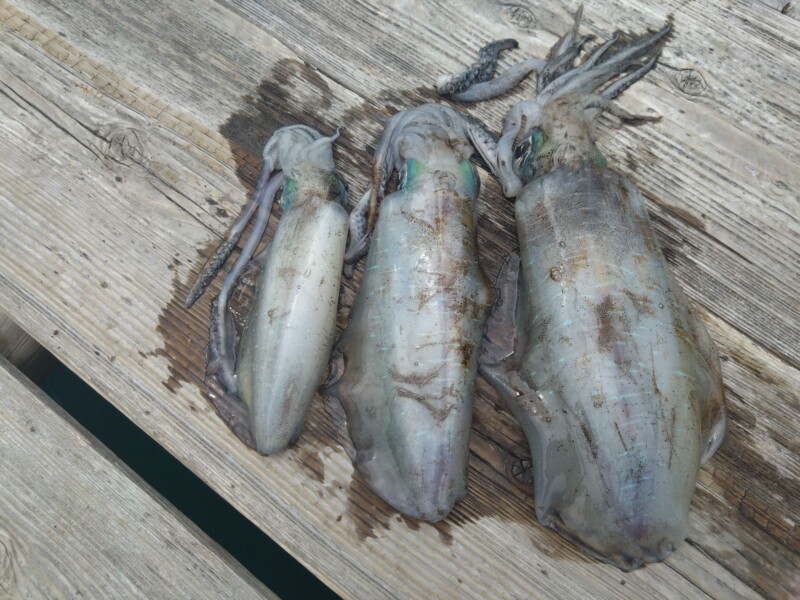 ヤエンでアオリイカ780g頭に3杯。