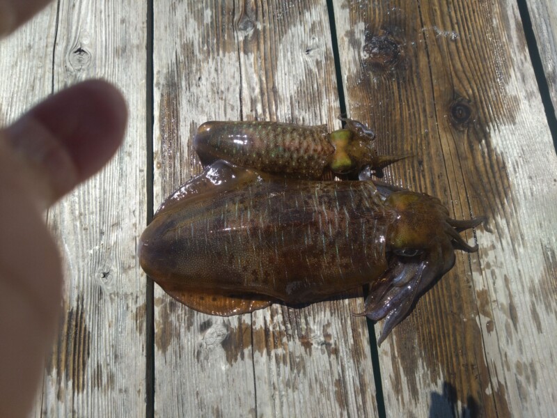 アオリイカ950g頭に2杯、当たり5回、
